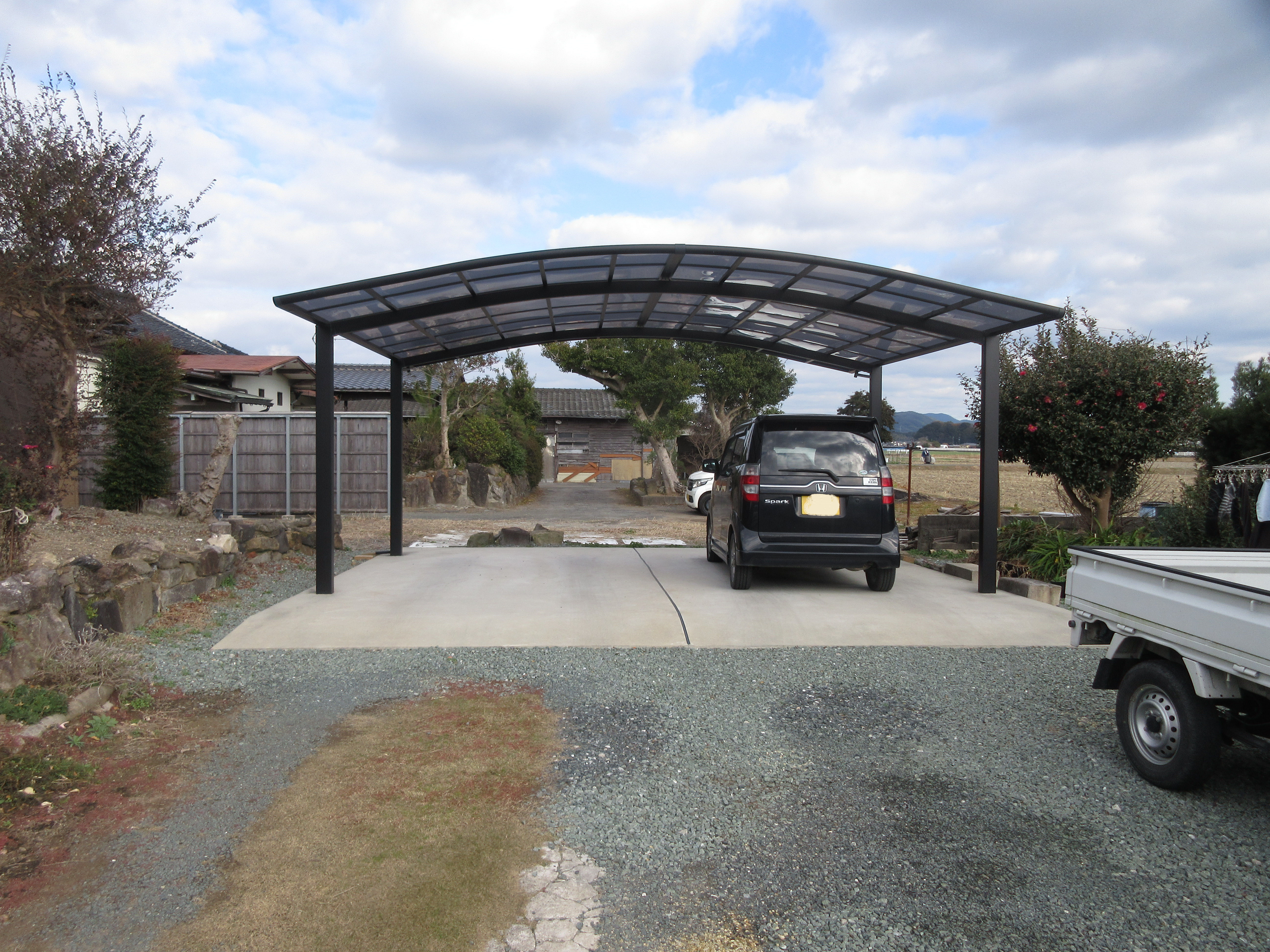 奥に見えるインターロッキングとウッドデッキは、第一期工事の品です